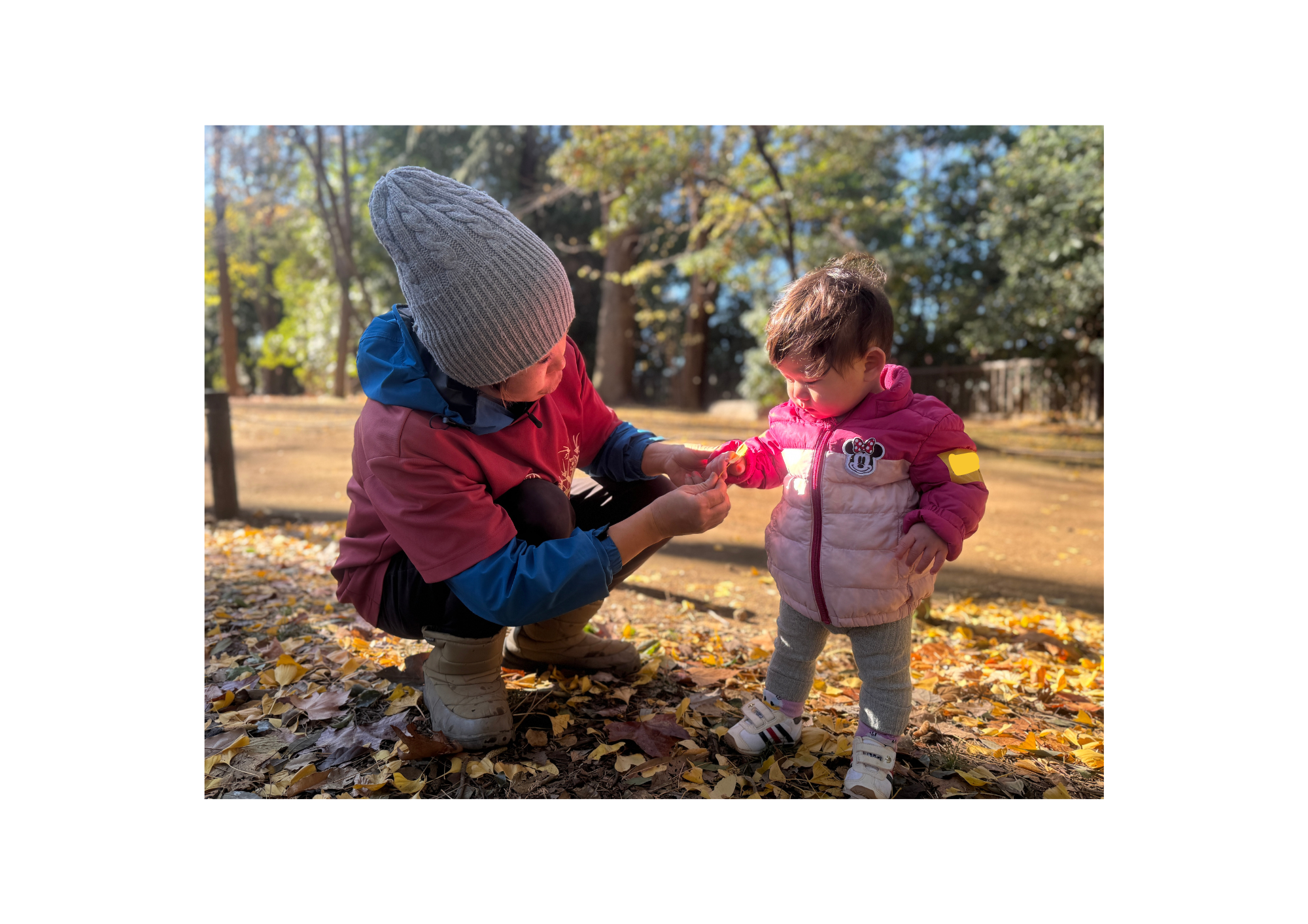 プレーパークに通い始めて数回目のときに、長男が誰かに貸してもらったスコップを1歳の子が欲しがって泣いてしまったことがある。慌てて長男に譲るように話していた私に、側に居たお母さんが「〇〇くん(長男)が貸せないのは当たり前だと思うよ。だって長い時間待ってやっと手に入ったスコップでしょ?」と話すと、泣いていた1歳の子に「ねぇ、今はこの子が使ってるんだよ?」と優しく伝えて、別のスコップを持ってきて手渡してくれた。